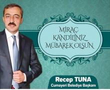 Cumayeri Belediye Başkanı Recep Tuna,Miraç kandili dolayısıyla bir mesaj yayımlayarak tüm İslam aleminin Miraç Kandilini kutladı. Haber:N.Ke