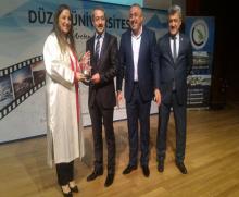 Düzce Üniversitesi’nin kuruluş yıl dönümünde Cumayeri Belediye Başkanına Rektör Çakar tarafından plaket verildi