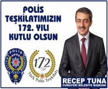 Cumayeri Belediye Başkanı Recep Tuna Türk Polis Teşkilatının 172. kuruluş yıl dönümü dolayısıyla mesaj yayımladı. Haber:N.Keleş Cuma